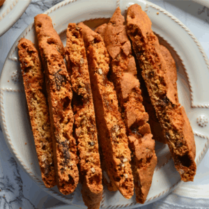 Each 7.15 oz bag includes about 12 cookies. Counts vary slightly as we hand cut every biscotti.